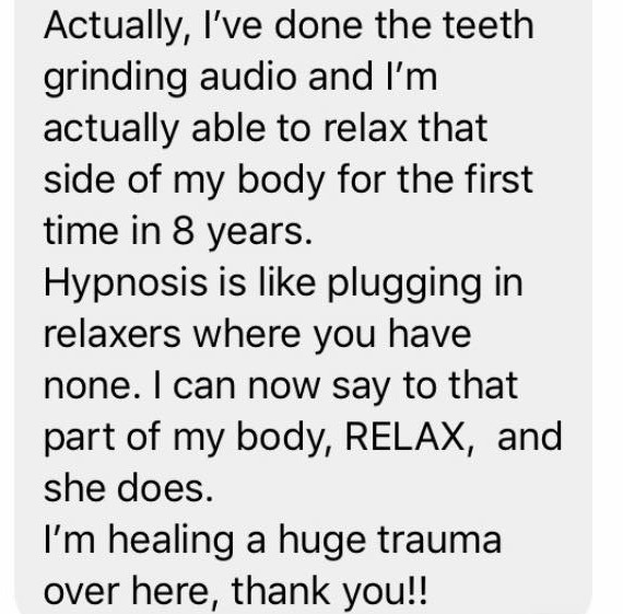 "I just wanted to say thank you again for the hypnosis sessions! Wow it was funny after a few days I really started to notice how some blocks were being released! I am calmer and overall happier. My child and I have been eating healthy for 6 days now and I know the hypnosis session has made it a lot easier for me! Thank you again for such an awesome experience!"