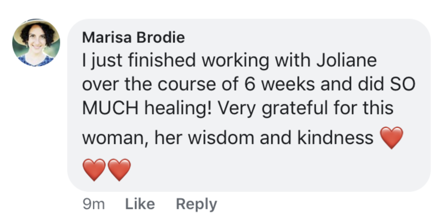 ''I just finished working with Joliane over the course of 6 weeks and did SO MUCH healing!